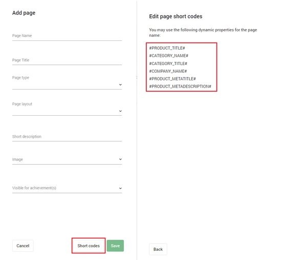 To use short codes for setting up your page information and meta data, simply copy the short code and paste it in the relevant field. For example, you can set up only the page meta title and add short code #META_TITLE# to page title or page category. However, it's important to make sure that the short codes are integrated into the type of page you're working on. In this case, when you would like to change all data, you can edit only the meta title, then the other data will change correspondingly. You can check which short codes are available for each page type by clicking on the 'Short code' button at the bottom of the edit page sidebar or add page sidebar. This will help to ensure that your meta data is accurate and consistent across all pages on your website.
