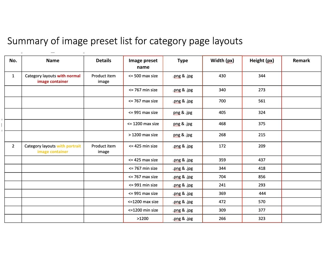 Each image is connected to multiple pre-sets, known as dynamic presets. This adaptability is crucial as container sizes vary based on the page layout, showcasing one, two or three products per row. Moreover, container sizes adjust according to the device used – be it mobile, tablet, or desktop. The dynamic pre-sets offer a wider range of sizes to which an image can shift to so that a mismatch in sizes cannot occur.