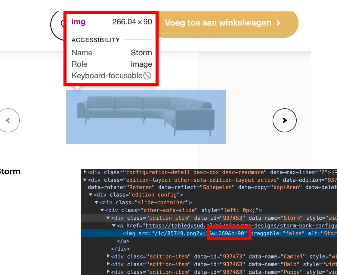 Image containers form the foundation of your page or product layout and determine how images are displayed by framing their 'rendered sizes'. When you upload images to your e-commerce website, they automatically conform to the format of the established container, perceivable in image below. However, the original image size, known as the ‘intrinsic size’ remains fixed and can therefore be larger or smaller than the rendered size. This mismatch may cause slower loading times.