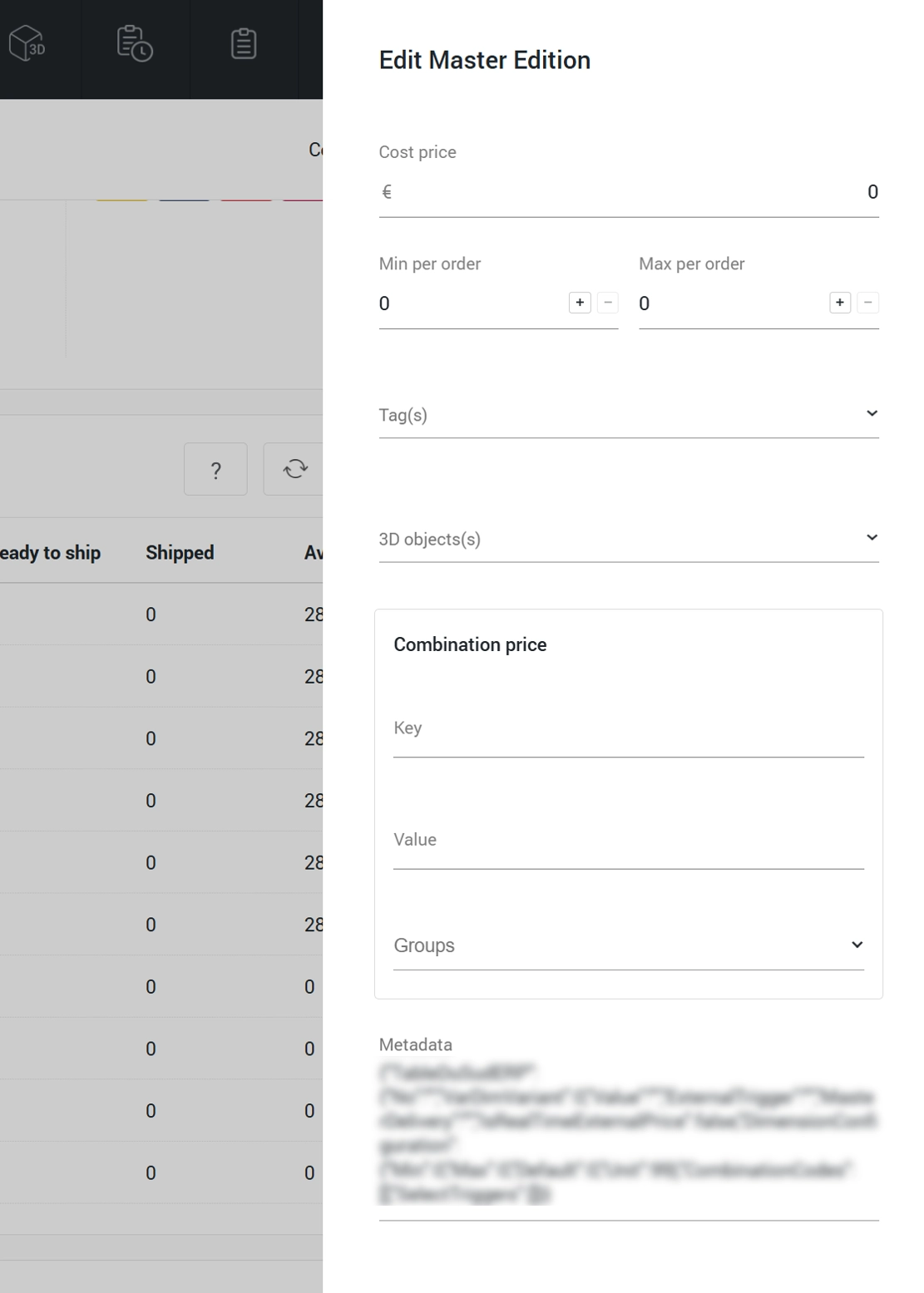 For new Master editions created after March 9, 2026, the key and value must be set up in Combination price instead of Meta data.