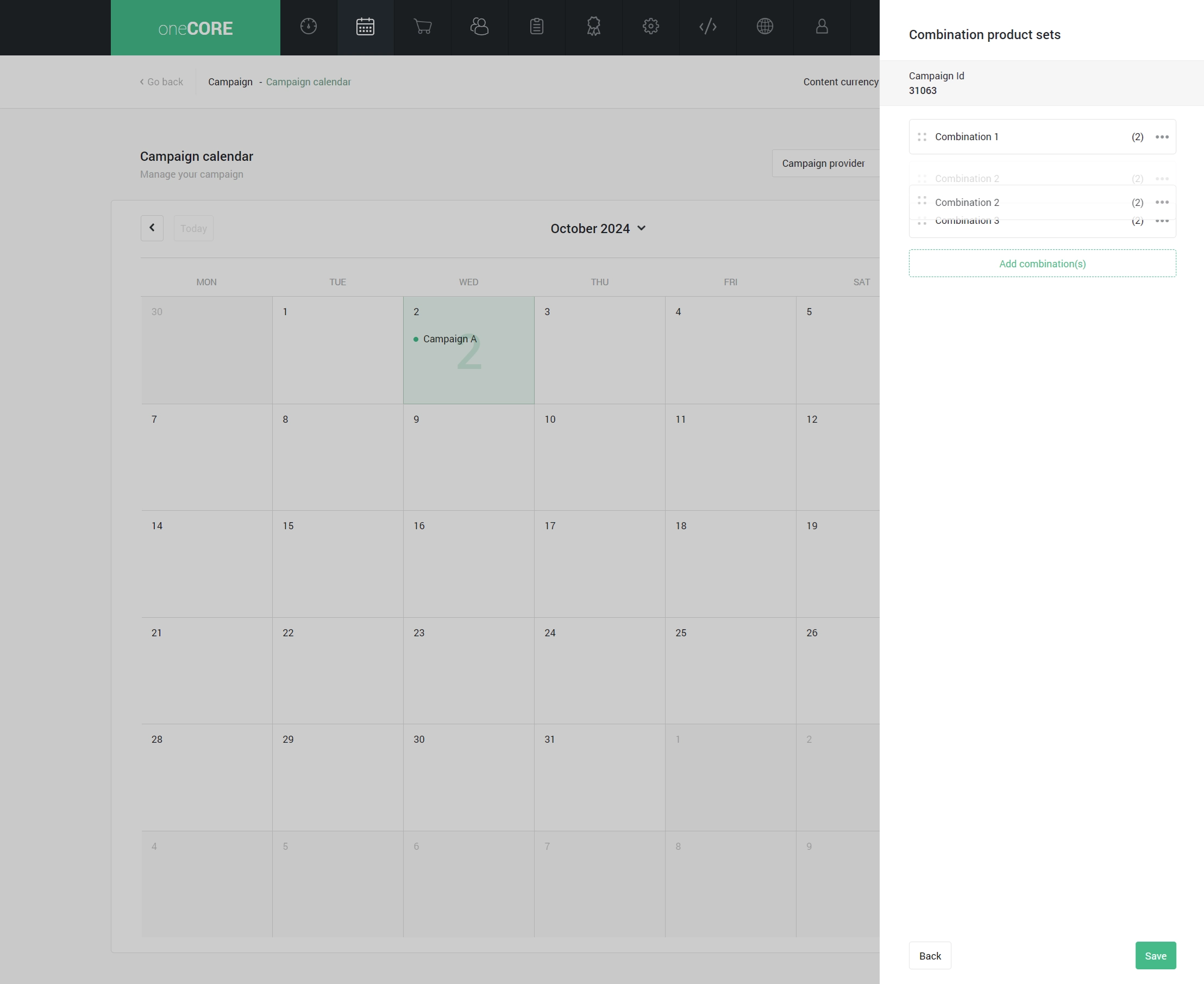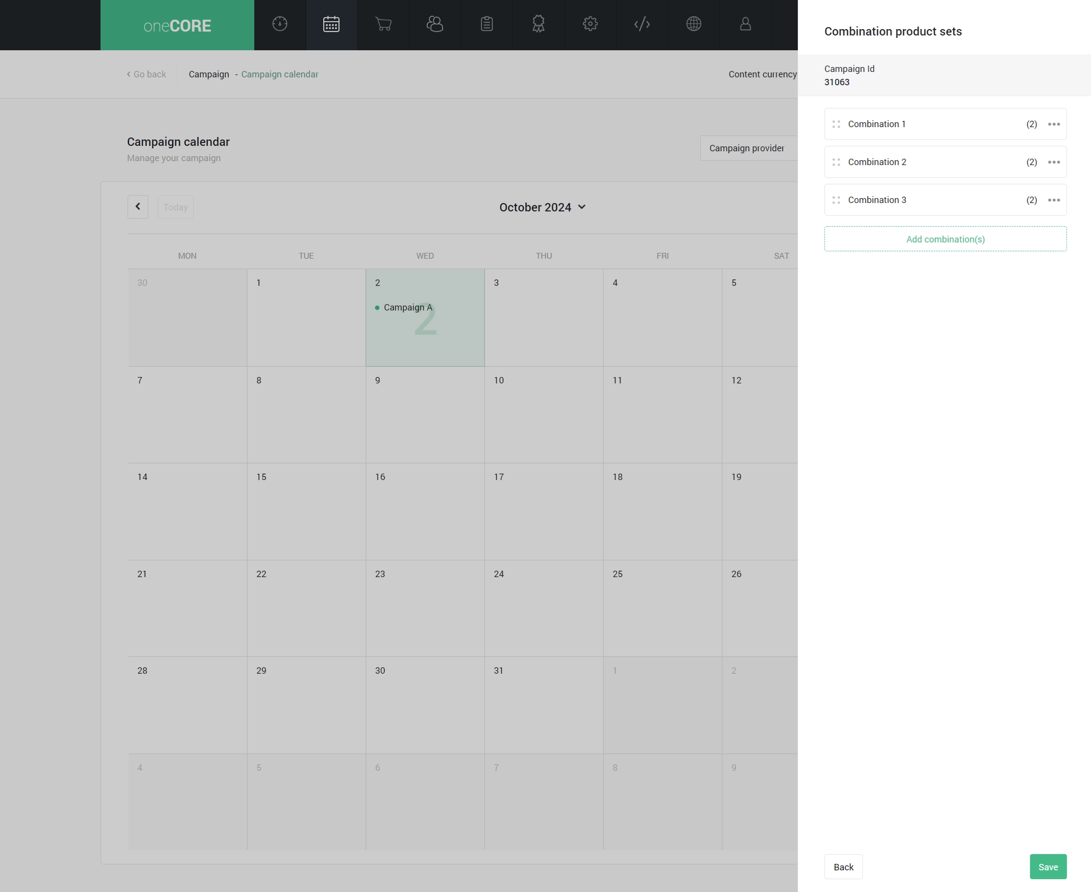 1. Select 'Product combination' under the 'calculation based on' field and click to set up Combination.