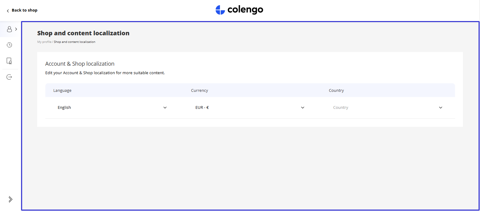 This component allows customers to customize their account and shop localization (compared to a setting page of Account V1).